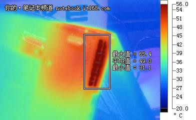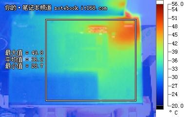 ▲筆記本機(jī)身底部熱量分布
