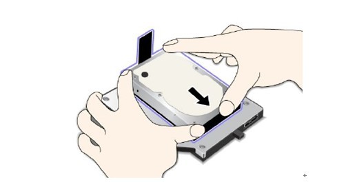現(xiàn)在已經(jīng)越來越多的人開始使用這種設(shè)備,而傳統(tǒng)的光驅(qū)現(xiàn)在幾乎是沒有人在使用,主要的原因是光盤現(xiàn)在也沒有幾個設(shè)備廠家在重視,比如安裝操作系統(tǒng)現(xiàn)在完全使用U盤就已經(jīng)可以了,如果想看看電源以及需要一些資源直接也在網(wǎng)上下載完成了,下圖中就是T420使用的硬盤托架,按照下圖的指示將硬盤安裝進(jìn)去,注意這種光驅(qū)位硬盤安裝硬盤的槽里面是有一個絕緣塑料的,如果那個塑料片掉了的話建議使用一個同硬盤大小的紙張代替,防止硬盤與金屬架子接觸電路的部分短路