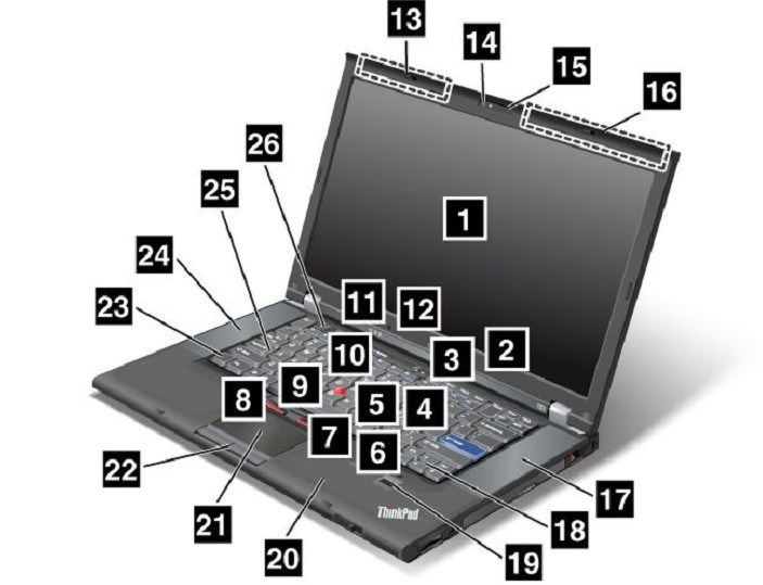 我們先來(lái)看看這款W520 T520筆記本的正面包含的所有硬件,以及這些硬件和功能簡(jiǎn)單介紹吧,其中就包含了如液晶屏幕內(nèi)的無(wú)線天線位置,以及鍵盤(pán)中可以組合的按鍵功能等等情況,由于T520和W520使用的硬件外殼材質(zhì)等都是一樣的,唯一有區(qū)別的就是顯卡配置上和液晶屏幕的分辨率上有差別,其他的均為一樣包含了電池鍵盤(pán)等等都是可以通用使用的。