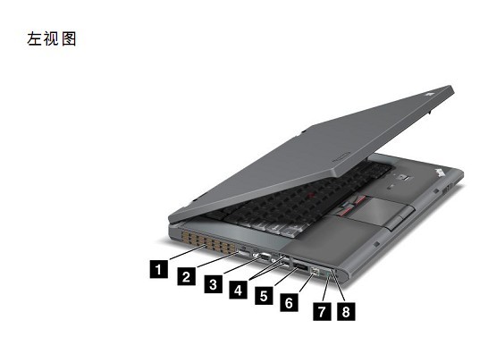 下面我們首先那一臺W520的筆記本從右側(cè)照片看看所有的硬件和接口有哪些: