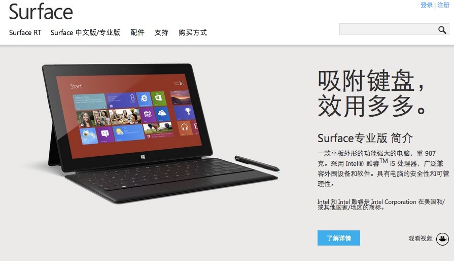北美市場在上個(gè)月已經(jīng)可以看到很多地方開始有Surface Pro系列的平板電腦,而就再今天將會在北美的第二站選擇了中國地區(qū),微軟正式宣布將會在大約是下周時(shí)間發(fā)布旗艦版的平板電腦在國內(nèi),當(dāng)然這個(gè)也主要是為了各個(gè)地區(qū)的用戶需求,而且還可以對抗平板市場的另外一個(gè)巨頭就是蘋果ipad電腦,預(yù)裝的系統(tǒng)是win8間體中文的專業(yè)版,里面預(yù)裝了一些不錯(cuò)的東西比如說免費(fèi)試用的offic 2013版以及學(xué)生版的平板也會首次在國內(nèi)面世,同時(shí)微軟也提供了兩個(gè)可以選擇的版本分別是64GB和128GB,其實(shí)一個(gè)小尺寸的平板電腦基本上64GB已經(jīng)非常足夠使用了。