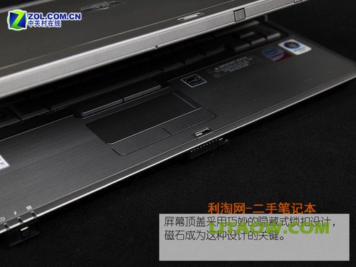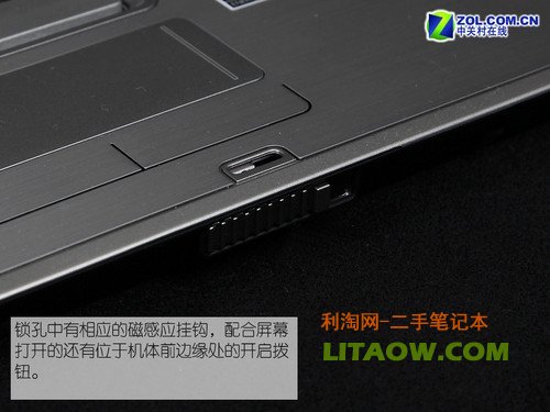 2730p并沒有采用傳統(tǒng)的鎖扣式設(shè)計,但是可旋轉(zhuǎn)的屏幕又需要一種穩(wěn)固的扣合方式,惠普便又拿出了其一貫使用的“磁石魔法”。在屏幕頂蓋中鎖孔中2730p藏有一顆強力磁石,當(dāng)頂蓋與底座貼近時鐵質(zhì)掛鉤會從底座鎖孔內(nèi)被吸出并自然掛在頂蓋鎖孔內(nèi),而依靠機體底部的播鈕又可以輕易的將掛鉤放下打開屏幕頂蓋。很巧妙的設(shè)計,不是嗎?