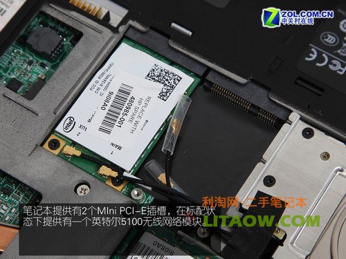 2個Mini PCI-E插槽中已經(jīng)安裝有一塊英特爾5100無線網(wǎng)絡(luò)模塊,而另一個空著的插槽應(yīng)當(dāng)就是為3G模塊所準(zhǔn)備的了吧。如果這次我拿到的是最高配置版的2730p相信就可以為大家展示3G網(wǎng)絡(luò)模塊的樣子。還有就是3G所需的SIM卡插也如同以往一般的被放在了電池模組下方。