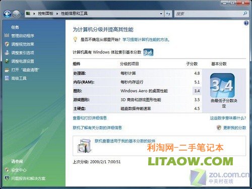 針對整機性能的測試中,我選擇了Windows Vista自帶的性能評定工具以及常用的PCMark 05,兩款軟件可以從操作系統(tǒng)本身以及其他常規(guī)軟件使用效果兩方面對當(dāng)前筆記本的性能進行衡量。
