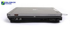 僅從機體左側(cè)來看,除了手寫筆的收納倉、可充電式USB2.0接口以及ExpressCard/34插槽之外還分布有無線網(wǎng)絡(luò)開關(guān)與惠普信息中心的激活按鍵。換句話說,解放了鍵盤操作面卻苦了擴展接口的平臺。另一側(cè)相對好些,分布有IEEE1394接口、音頻輸入輸出接口、SD卡讀卡器、USB2.0接口以及筆記本電腦鎖。