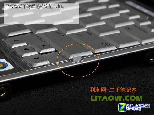注意到鍵盤邊框處的小凸起了嗎?這是用來在筆記本扣合或者平板電腦模式下定位屏幕使之不會出現(xiàn)左右轉(zhuǎn)動而設(shè)計的。