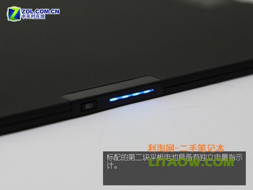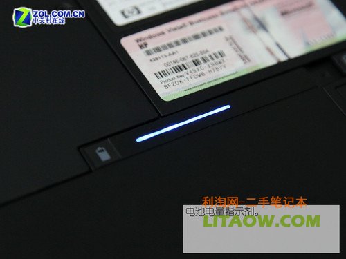 實際上在2730p筆記本的機體底部已經(jīng)預(yù)留有相應(yīng)的擴展塢接口與旅行電池插口。比較有趣的是,因為所提供的是平板電池,所以在完全安裝后電池會覆蓋筆記本的整個底座?;萜找矝]有忘記為這塊額外提供的旅行電池設(shè)計一個電量指示劑。