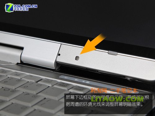 盡管顯示效果相對滯后,但是HP EliteBook 2730p屏幕卻能夠盡其所能的保護用戶雙眼與節(jié)省電量。位于屏幕下邊框處,我發(fā)現(xiàn)了一顆能夠隨環(huán)境光線明暗變化調(diào)節(jié)屏幕亮度的光敏電阻。